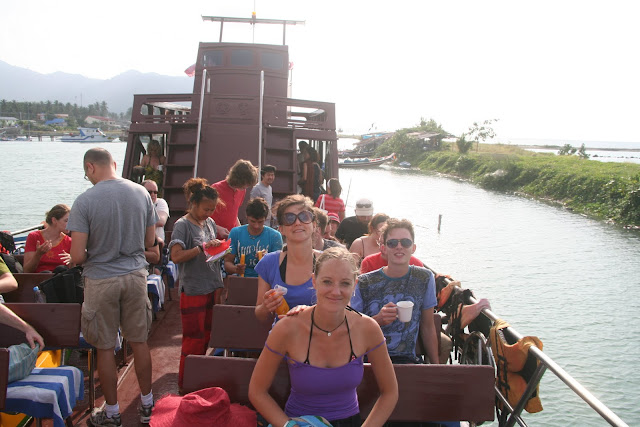 The next day we woke and hopped into a cab to Hua Lampong station to grab our train. Once on, the eight hours trip down south passed pretty quickly and we checked in to the Thairungruang Hotel for the night. Once again, this place was pretty cheap (about 500 Baht a night) and we'd recommend it to anyone unfortunate enough to stay the night in Surat Thani. Most people would get an overnight train from Bangkok to Surat Thani in order to get the early bus to Don Sak pier but after our experience of arriving in Chiang Mai looking like the living dead, we decided not to. Surat Thani has nothing going for it really. We sauntered around trying to find the best bus-ferry combo deal and just went for an offer from a travel agents adjacent to the hotel. 350 Baht each would get you a bus to Don Sak pier and then onto the ferry to Koh Phangan (about a four hour trip all in all). We were told of a night market. The 'night market' was about ten stalls selling meat on a stick. Instead, we busied ourselves in a bar down the road and drank incredibly cheap Thai whiskey until it was time for bed. Ah, holidays.